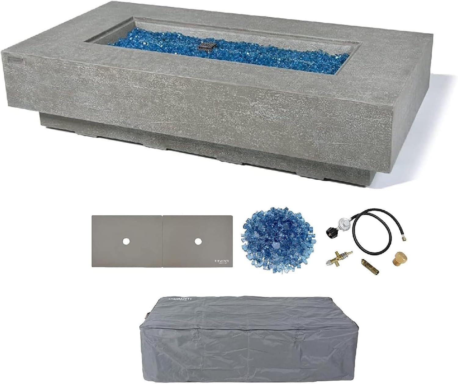 | Included Components | Aluminum lid, Bronze fire glass, Canvas cover, Optional (Wind screen, Tank covers) |