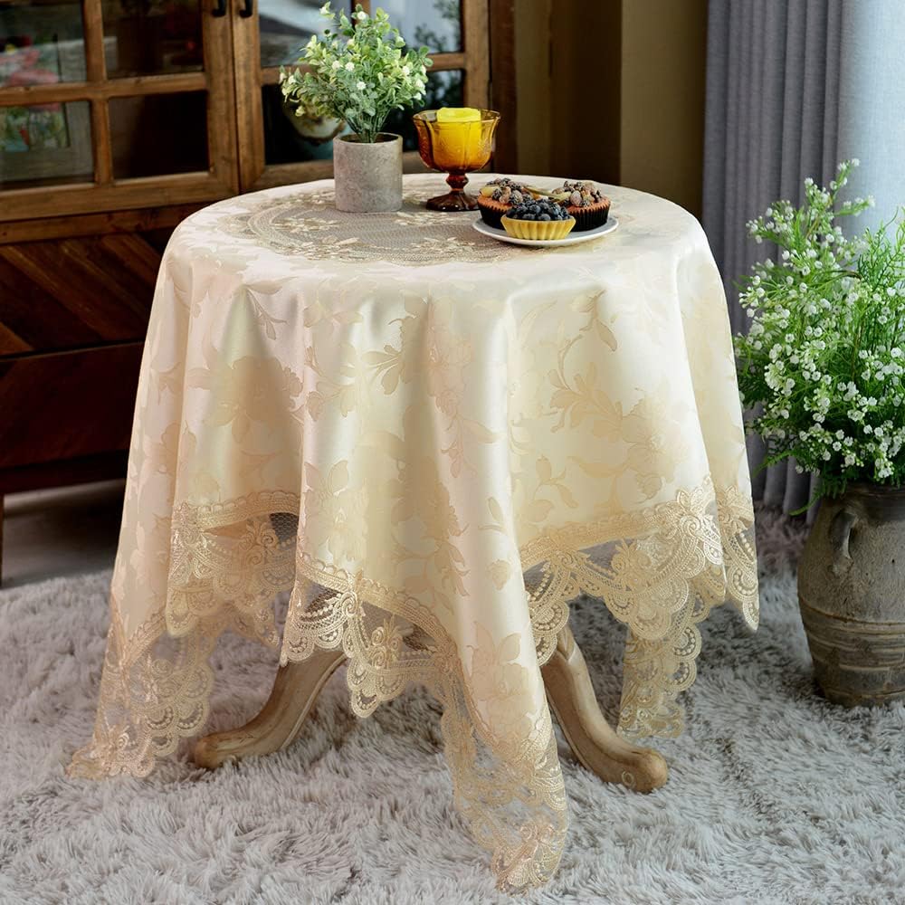ARTABLE Lace Small Table Cloth Square Fall Christmas Macrame Tablecloth Round Table Topper for Thanksgiving Outdoor Farmhouse Rustic Kitchen Party Birthday Picnic Color · Light Brown, Stone, White, Ivory Features · Available Sizes: 33x33 inch square, 43x43 inch square, 51x51 inch square, 23 inch round, 31 inch round, 39 inch round, 47 inch round · Available Shapes: Square, Round · Material: 100% Polyester · Machine washable, No Shrinking, No colour ran, No Wrinkle · Stain Resistant · Friends and family of all ages can relax and celebrate indoors or out, with no worries about its easy-care. · Suitable for Cafes, dinners, weddings, brunches and many more.