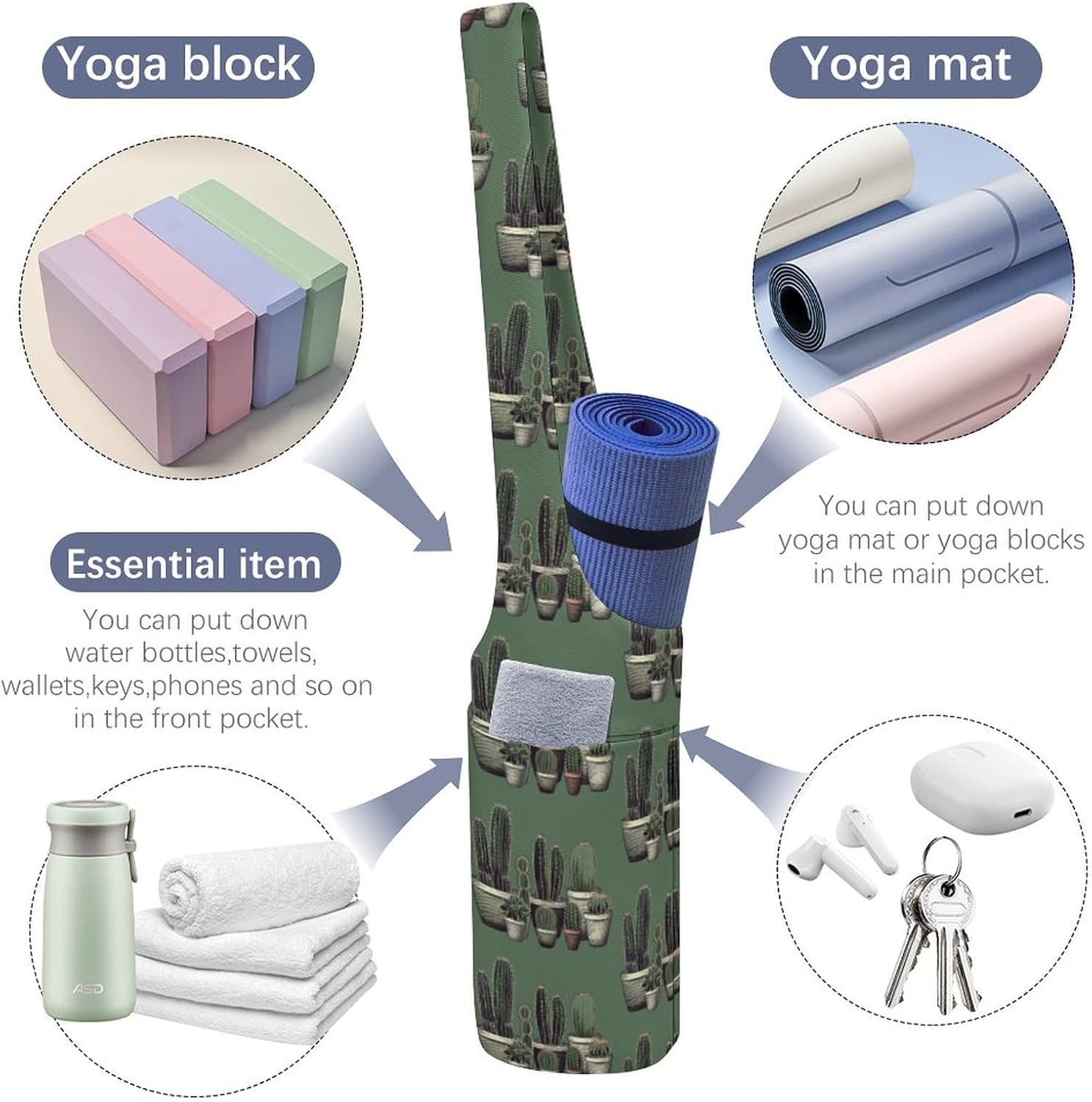 Can be used as a yoga mat bag, gym bag or Pilates bag, it is an ideal choice for yoga lovers, parents who balance fitness and travelers who need a reliable yoga gym bag Owning an excellent Green Cactus printed Travel yoga gym bag can make your yoga practice easier. You don't have to worry about dirt, dust and damage because your yoga mat will be protected, and after the yoga class, just throw everything into the yoga bag and you're ready to go