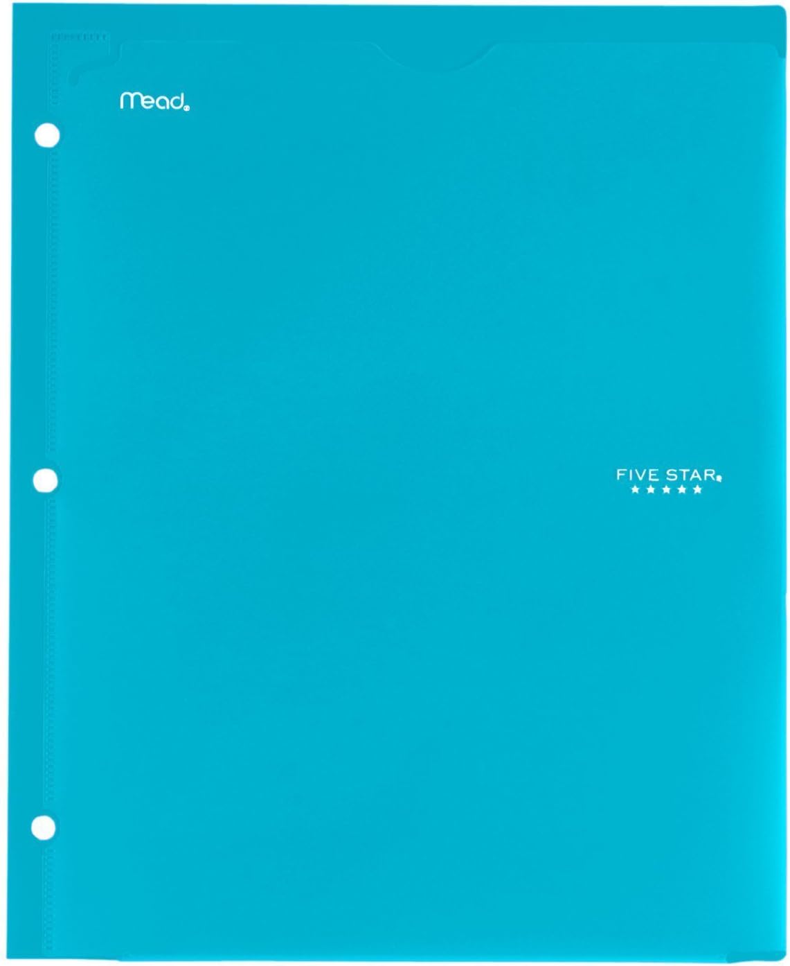 LASTS ALL YEAR. * This Five Star folder will help you stay organized throughout the school year. With a clearview plastic cover, you can insert your own coversheets or drawing for customization. The folder has 2 interior pockets, with a patented stress-relief design for extra durability. The durable, plastic surface and reinforced spine help make sure your papers stay in place. Plus, the folder is 3-hole punched, so you can store it in your favorite Five Star binder. Folder holds 8-1/2" x 11" papers and has an overall size of 9-1/2" x 11-3/4". 4 pack includes: Teal, White, Purple and Lime. *ACCO Brands will replace any Five Star folder that is returned within one year from the date of purchase. Contact ACCO Brands Consumer Affairs for instructions.