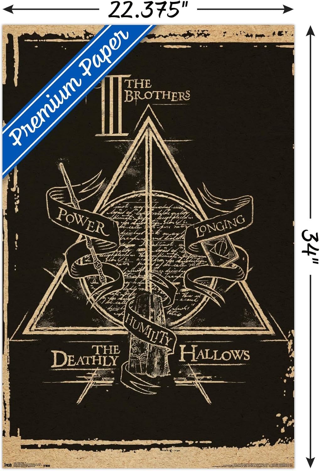 Trends International wall posters are everyone's favorite room decor! This Harry Potter - Deathly Hallows - The Brothers - Symbol Wall Poster is created with high-resolution artwork and is printed on glossy poster paper which enhances the colors to make a bold wall decor statement in any room. Decorate the bedroom, bathroom, kid's room, living room, office, dorm, and more! Our art prints are lightweight and easy to hang using the included adhesive poster mounts that won't leave holes in your poster or damage your wall like nails, thumb tacks, or push pins. Every one of our premium posters are proudly Made in the USA. Add these decorations alongside the other accessories on your party supplies list too! Trends International's wall posters are the perfect way to dress up your parties. Poster bundles make great gifts as well! Whether it's for a birthday, Christmas, house warming or for your best friend, they'll love receiving a poster and mount bundle to show off their style.