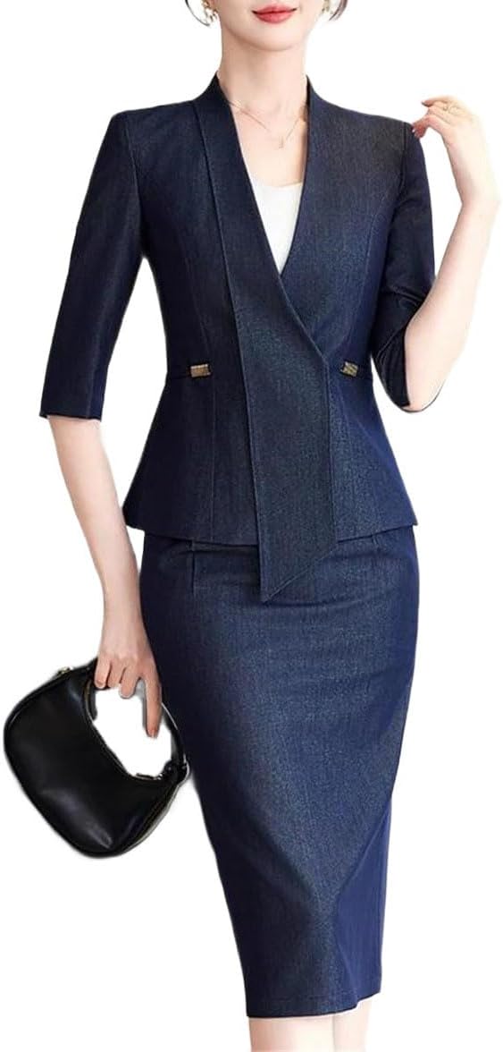 Discover our collection of women two piece skirt suit sets designed for elegance, comfort, and versatility. Each outfit is crafted with attention to detail, featuring a variety of styles such as single breasted, double breasted, belted, or cropped blazers paired with matching skirts. Whether you prefer a classic slim fit, modern tweed design, or stylish sequin detail, these sets bring sophistication to both formal and casual occasions.From professional office wear to elegant evening outfits, our suits offer options for every season. Lightweight short sleeve blazers with skirts are perfect for summer, while long sleeve wool blend and knit sets provide warmth and refinement for winter. Featuring A line skirts, pencil skirts, fishtail, or pleated styles。Designed for business meetings, interviews, weddings, or parties, these skirt suits combine practicality and chic fashion. Details such as bow collars, applique, beading, lace, mesh and ruffle hems , ensuring you stand out effortlessly. Pair them with heels or flats for a polished and feminine look that transitions seamlessly from office to evening.Our range includes casual denim skirt sets, vintage inspired tweed suits, and modern solid color designs. Choose from round neck, V neck, notched lapel, or stand collar styles to match your personal preference. Every set is made to balance style and comfort, making it an essential choice for confident women who value elegance in daily life and special events.business outfit office wear formal skirt suit blazer set elegant professional attire party fashion work casual slim fit double breasted single breasted tweed sequin vintage modern classic wedding interview
